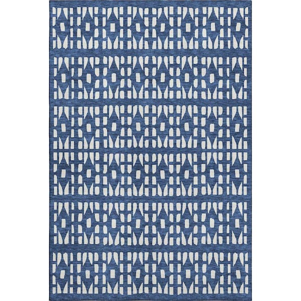 Mayfield Premium Machine Washable Abstract AMF963 Navy 10 ft. x 14 ft. Area Rug