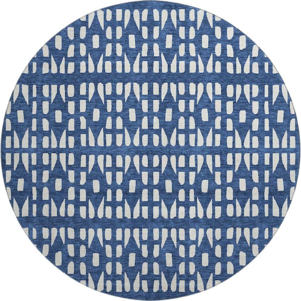 Mayfield Premium Machine Washable Abstract AMF963 Navy 8 ft. x 8 ft. Round Rug