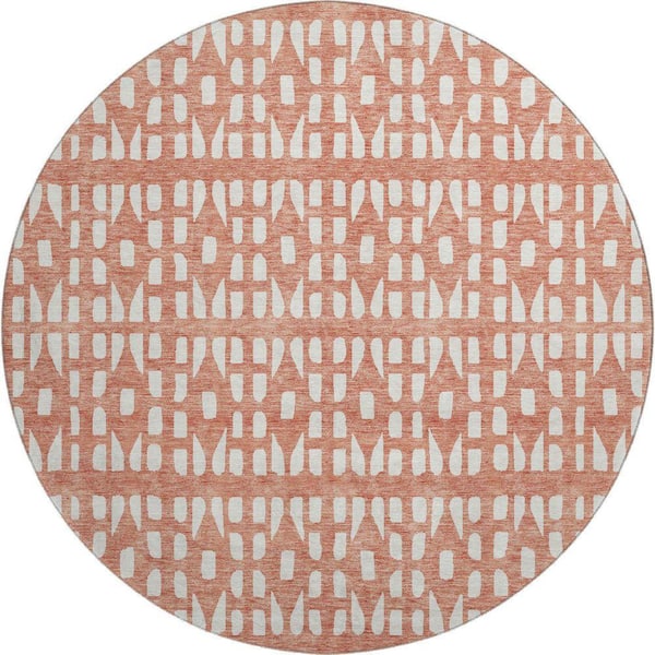 Mayfield Premium Machine Washable Abstract AMF963 Salmon 8 ft. x 8 ft. Round Rug