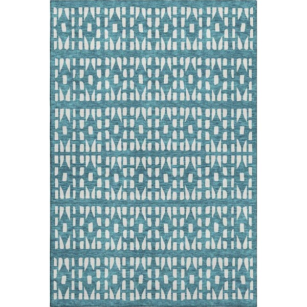 Mayfield Premium Machine Washable Abstract AMF963 Teal 8 ft. x 10 ft. Area Rug