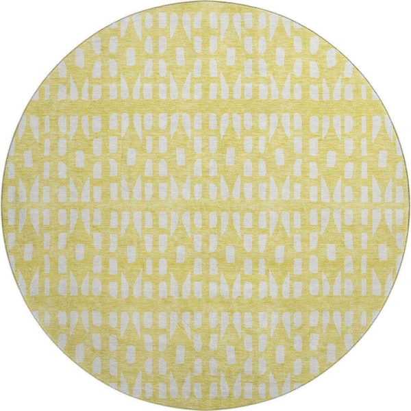 Mayfield Premium Machine Washable Abstract AMF963 Yellow 8 ft. x 8 ft. Round Rug