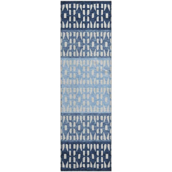 Mayfield Premium Machine Washable Abstract AMF964 Blue 2 ft. 3 in. x 7 ft. 6 in. Runner Rug