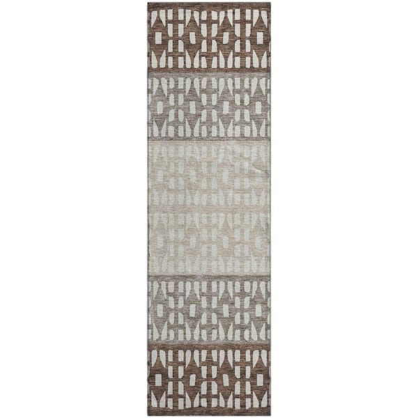 Mayfield Premium Machine Washable Abstract AMF964 Chocolate 2 ft. 3 in. x 7 ft. 6 in. Runner Rug