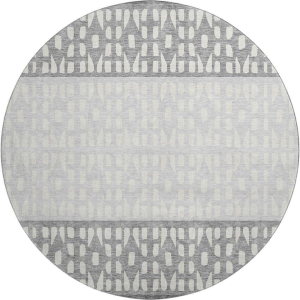 Mayfield Premium Machine Washable Abstract AMF964 Gray 8 ft. x 8 ft. Round Rug