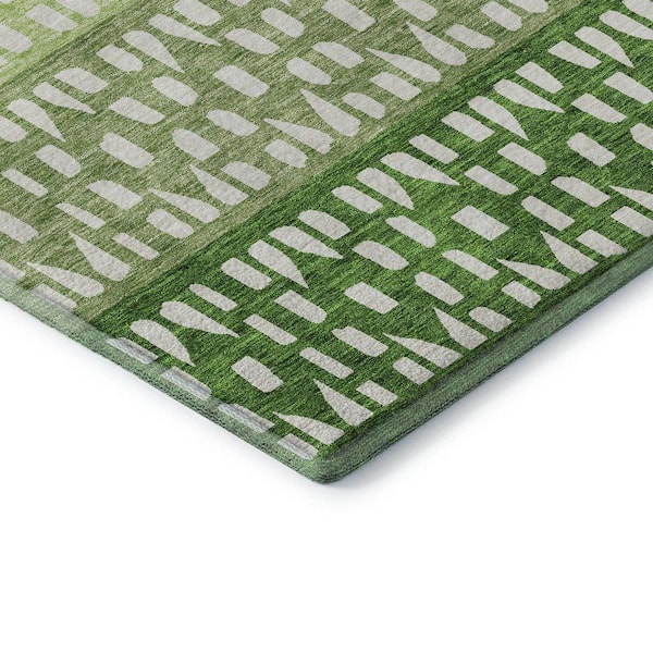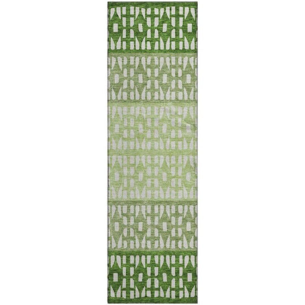 Mayfield Premium Machine Washable Abstract AMF964 Green 2 ft. 3 in. x 7 ft. 6 in. Runner Rug