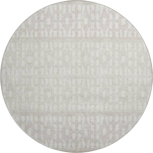 Mayfield Premium Machine Washable Abstract AMF964 Ivory 8 ft. x 8 ft. Round Rug