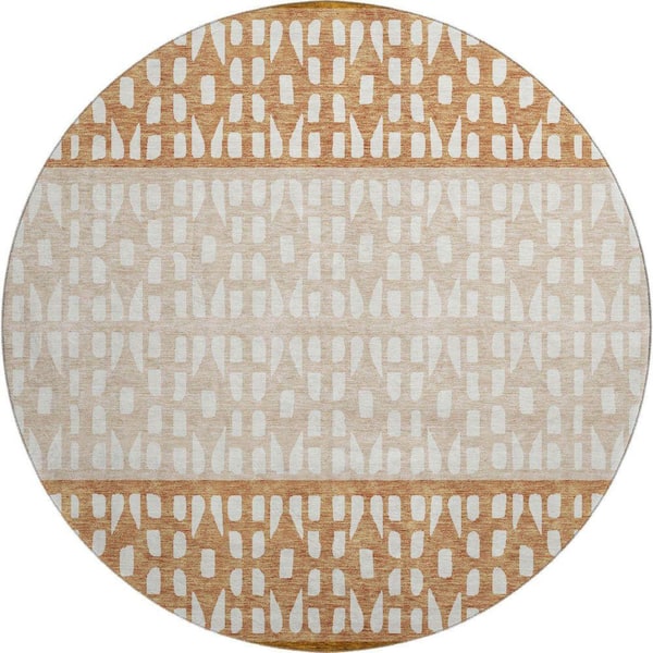 Mayfield Premium Machine Washable Abstract AMF964 Paprika 8 ft. x 8 ft. Round Rug