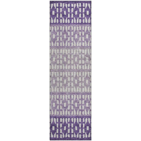 Mayfield Premium Machine Washable Abstract AMF964 Purple 2 ft. 3 in. x 7 ft. 6 in. Runner Rug