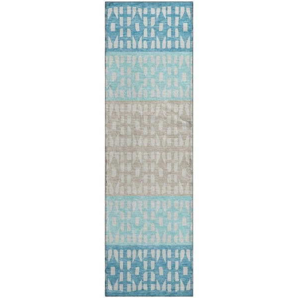 Mayfield Premium Machine Washable Abstract AMF964 Teal 2 ft. 3 in. x 7 ft. 6 in. Runner Rug
