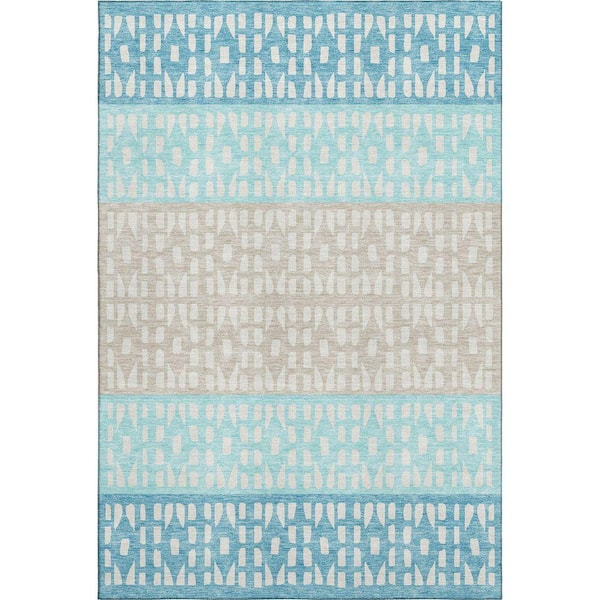 Mayfield Premium Machine Washable Abstract AMF964 Teal 9 ft. x 12 ft. Area Rug
