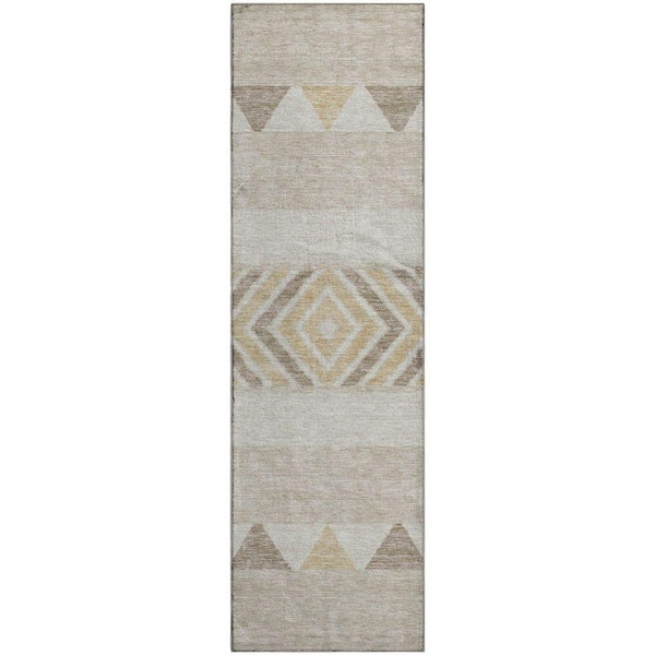 Mayfield Premium Machine Washable Abstract AMF965 Beige 2 ft. 3 in. x 7 ft. 6 in. Runner Rug