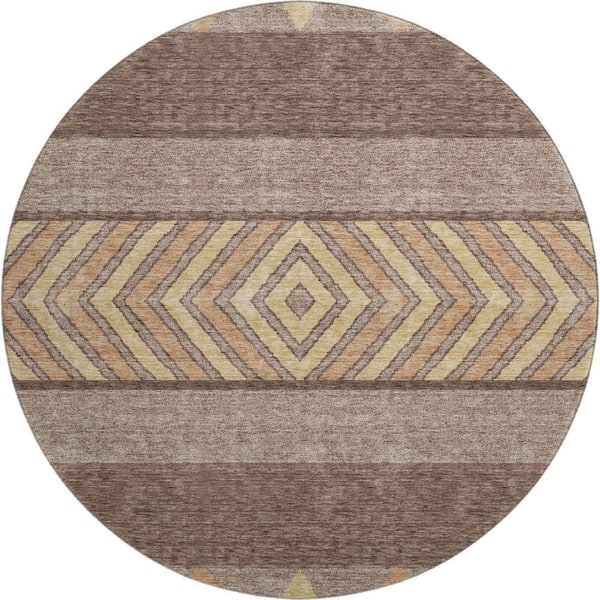 Mayfield Premium Machine Washable Abstract AMF965 Brown 8 ft. x 8 ft. Round Rug
