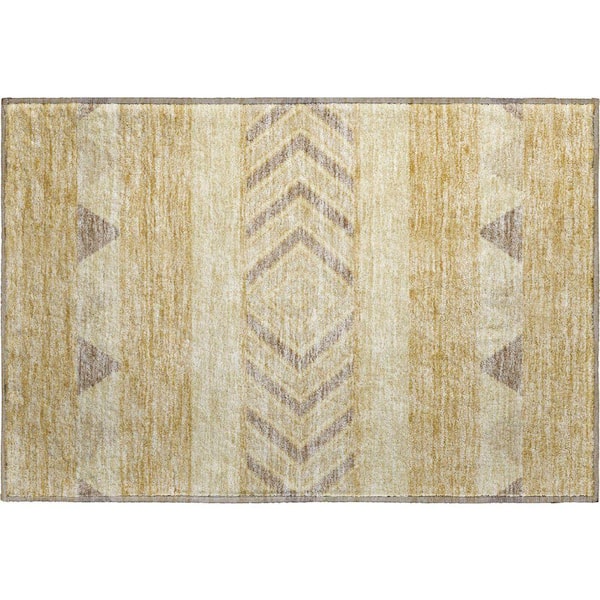 Mayfield Premium Machine Washable Abstract AMF965 Gold 1 ft. 8 in. x 2 ft. 6 in. Area Rug