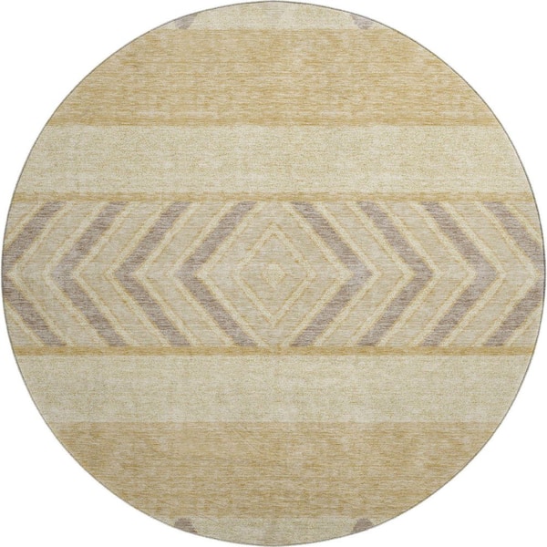 Mayfield Premium Machine Washable Abstract AMF965 Gold 8 ft. x 8 ft. Round Rug