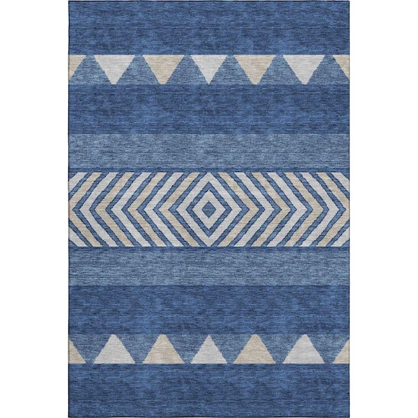 Mayfield Premium Machine Washable Abstract AMF965 Navy 5 ft. x 7 ft. 6 in. Area Rug