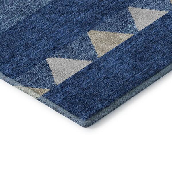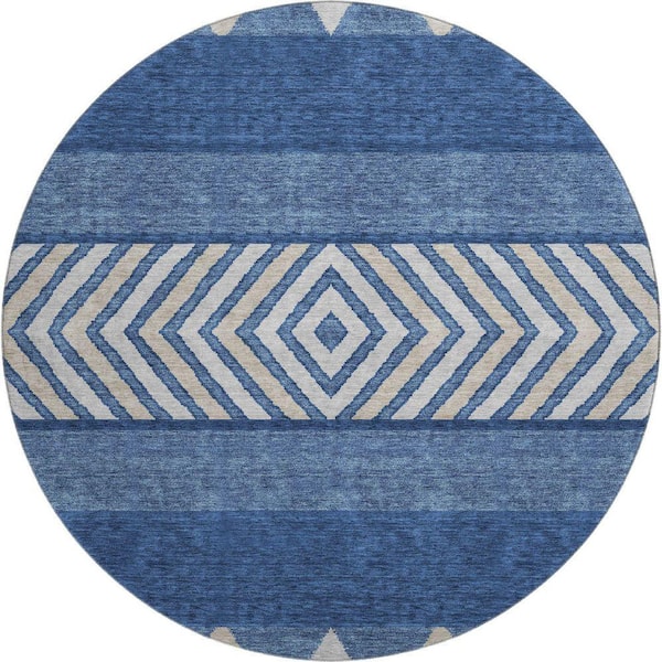 Mayfield Premium Machine Washable Abstract AMF965 Navy 8 ft. x 8 ft. Round Rug