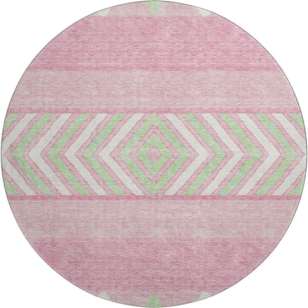Mayfield Premium Machine Washable Abstract AMF965 Pink 8 ft. x 8 ft. Round Rug