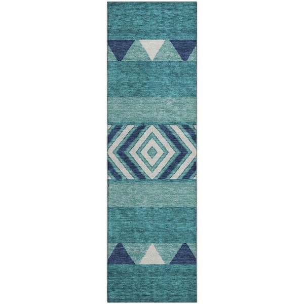 Mayfield Premium Machine Washable Abstract AMF965 Teal 2 ft. 3 in. x 7 ft. 6 in. Runner Rug