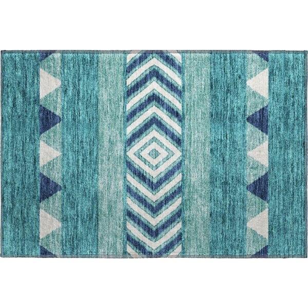 Mayfield Premium Machine Washable Abstract AMF965 Teal 2 ft. x 3 ft. Area Rug