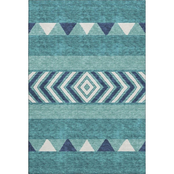 Mayfield Premium Machine Washable Abstract AMF965 Teal 5 ft. x 7 ft. 6 in. Area Rug