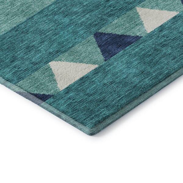 Mayfield Premium Machine Washable Abstract AMF965 Teal 8 ft. x 8 ft. Round Rug