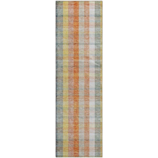 Mayfield Premium Machine Washable Abstract AMF966 Peach 2 ft. 3 in. x 7 ft. 6 in. Runner Rug