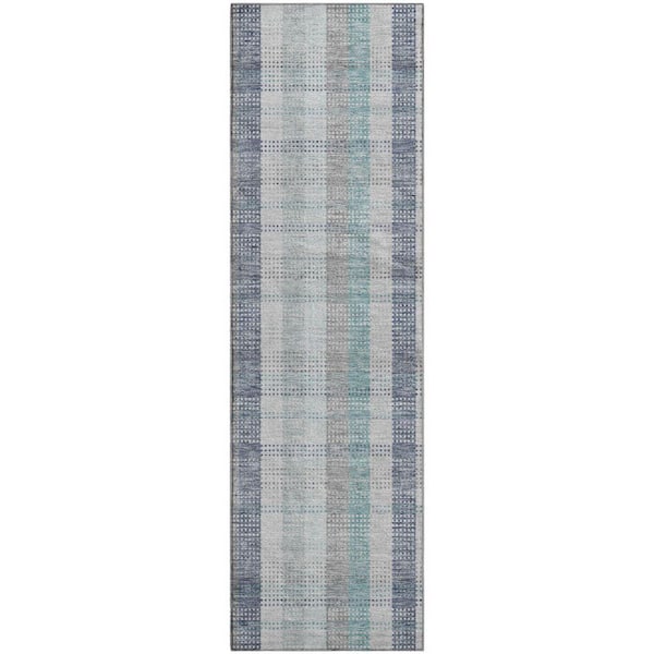 Mayfield Premium Machine Washable Abstract AMF966 Silver 2 ft. 3 in. x 7 ft. 6 in. Runner Rug