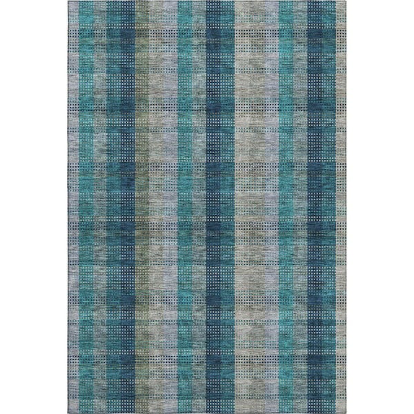 Mayfield Premium Machine Washable Abstract AMF966 Teal 8 ft. x 10 ft. Area Rug