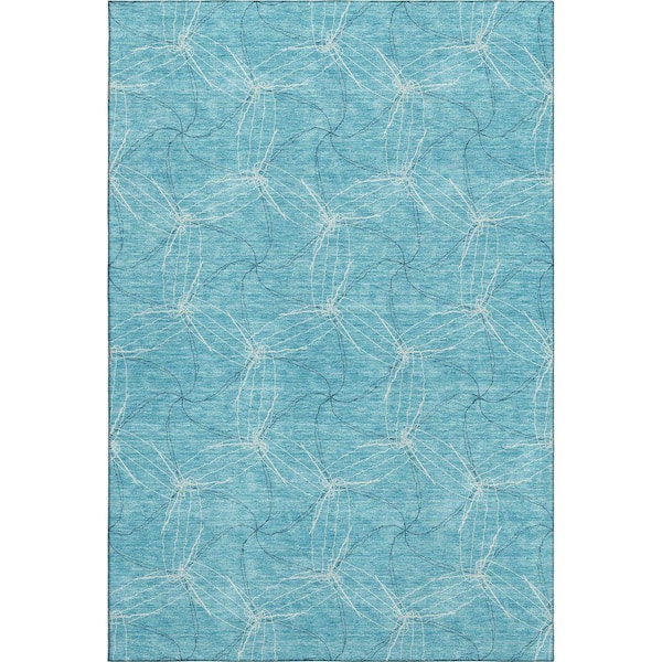 Mayfield Premium Machine Washable Abstract AMF968 Aqua 10 ft. x 14 ft. Area Rug
