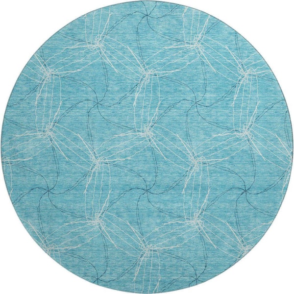Mayfield Premium Machine Washable Abstract AMF968 Aqua 8 ft. x 8 ft. Round Rug