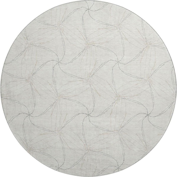 Mayfield Premium Machine Washable Abstract AMF968 Ivory 8 ft. x 8 ft. Round Rug