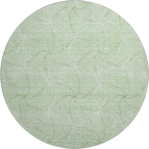 Mayfield Premium Machine Washable Abstract AMF968 Mint 8 ft. x 8 ft. Round Rug