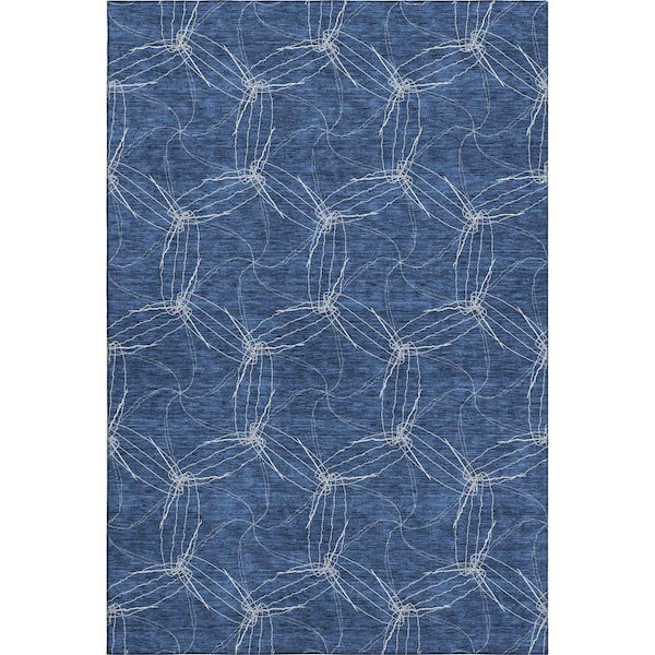 Mayfield Premium Machine Washable Abstract AMF968 Navy 8 ft. x 10 ft. Area Rug