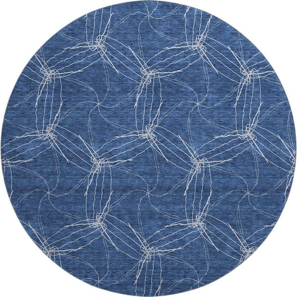 Mayfield Premium Machine Washable Abstract AMF968 Navy 8 ft. x 8 ft. Round Rug