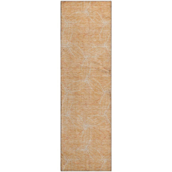 Mayfield Premium Machine Washable Abstract AMF968 Peach 2 ft. 3 in. x 7 ft. 6 in. Runner Rug