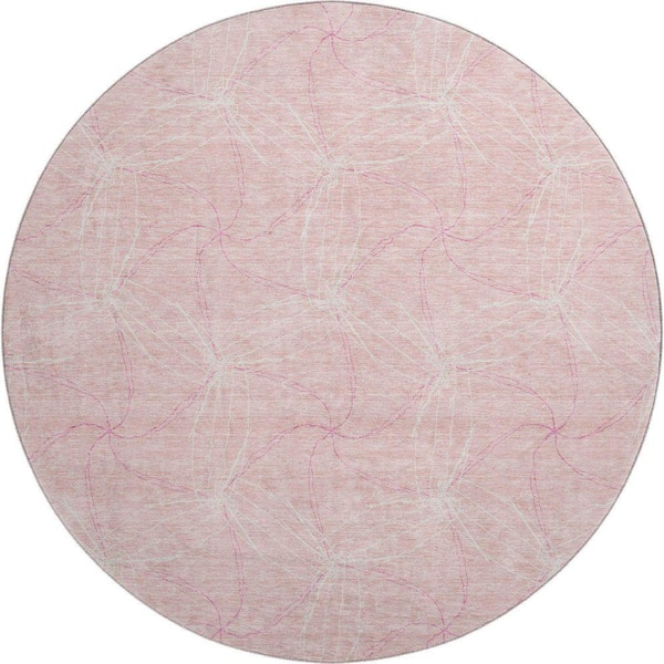Mayfield Premium Machine Washable Abstract AMF968 Pink 8 ft. x 8 ft. Round Rug