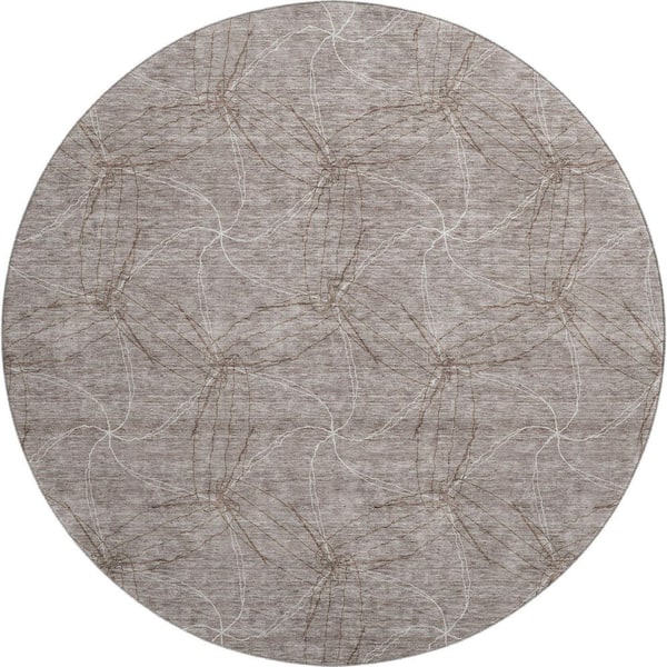 Mayfield Premium Machine Washable Abstract AMF968 Taupe 8 ft. x 8 ft. Round Rug