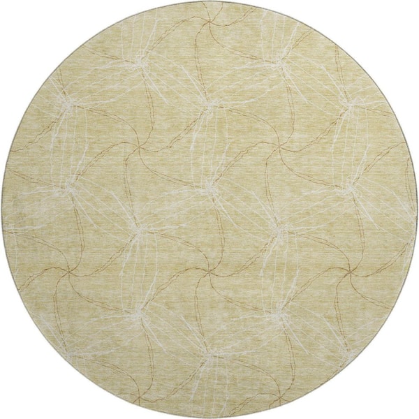 Mayfield Premium Machine Washable Abstract AMF968 Wheat 8 ft. x 8 ft. Round Rug