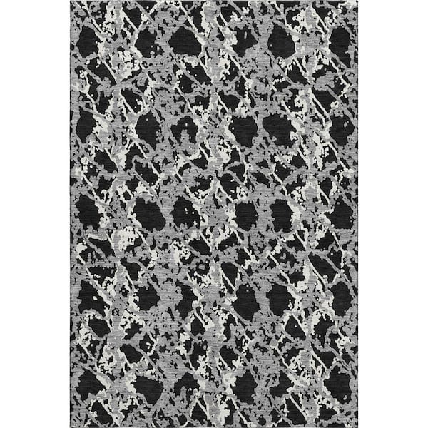 Mayfield Premium Machine Washable Abstract AMF969 Black 10 ft. x 14 ft. Area Rug
