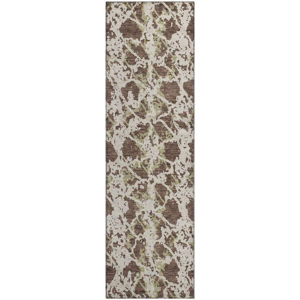 Mayfield Premium Machine Washable Abstract AMF969 Brown 2 ft. 3 in. x 7 ft. 6 in. Runner Rug