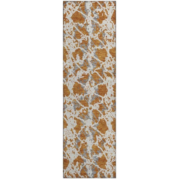 Mayfield Premium Machine Washable Abstract AMF969 Copper 2 ft. 3 in. x 7 ft. 6 in. Runner Rug