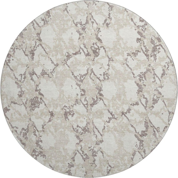 Mayfield Premium Machine Washable Abstract AMF969 Ivory 8 ft. x 8 ft. Round Rug