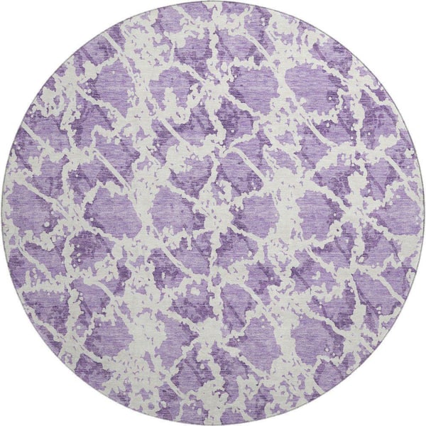 Mayfield Premium Machine Washable Abstract AMF969 Lilac 8 ft. x 8 ft. Round Rug