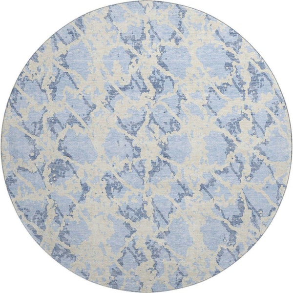 Mayfield Premium Machine Washable Abstract AMF969 Sky 8 ft. x 8 ft. Round Rug