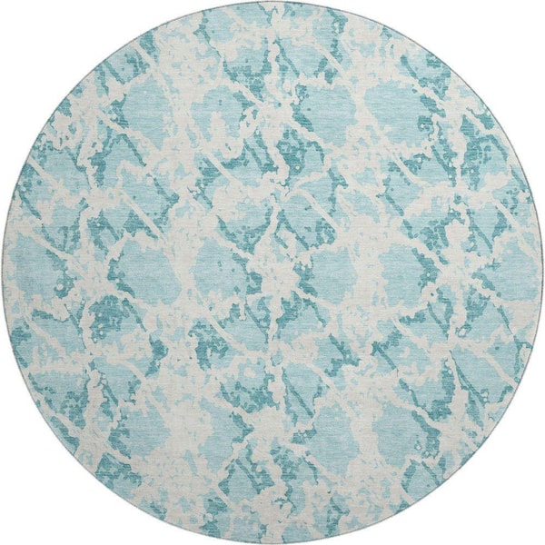 Mayfield Premium Machine Washable Abstract AMF969 Teal 8 ft. x 8 ft. Round Rug