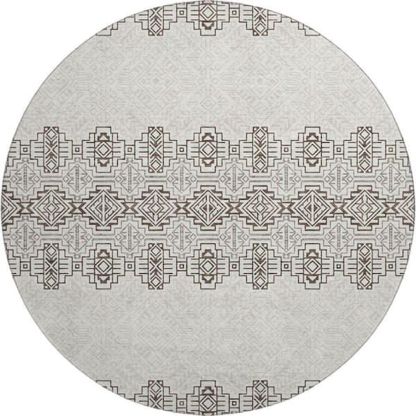 Mayfield Premium Machine Washable Abstract AMF970 Chocolate 8 ft. x 8 ft. Round Rug