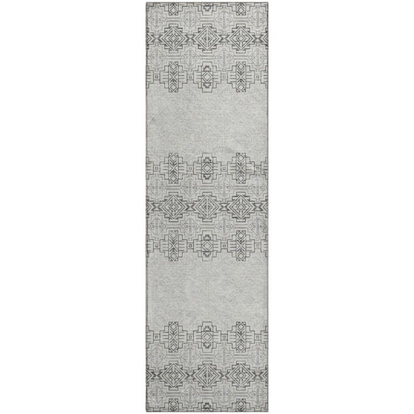 Mayfield Premium Machine Washable Abstract AMF970 Gray 2 ft. 3 in. x 7 ft. 6 in. Runner Rug