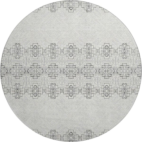 Mayfield Premium Machine Washable Abstract AMF970 Gray 8 ft. x 8 ft. Round Rug