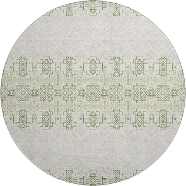 Mayfield Premium Machine Washable Abstract AMF970 Green 8 ft. x 8 ft. Round Rug