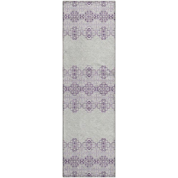 Mayfield Premium Machine Washable Abstract AMF970 Purple 2 ft. 3 in. x 7 ft. 6 in. Runner Rug